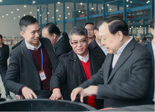 在生产车间公元产品展示台前,夏宝龙饶有兴趣地听取了张建均和卢震宇的介绍,现场观摩了给水、排水、市政、工业、农业排灌、燃气等各类管材、管件和阀门产品。当了解到公元产品品种齐全、品质过硬、行业领先,在服务全省“五水共治”项目中表现优异,燃气高端阀门填补国内空白等情况时,夏宝龙称赞“了不起!”并鼓励公元好好干,争取年年都有新进步。