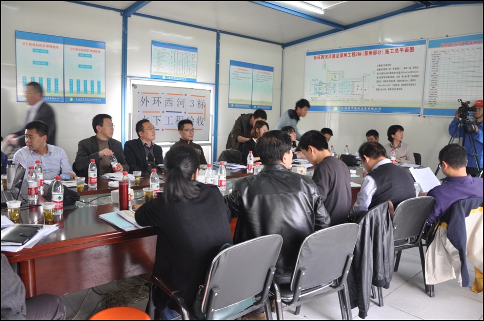 2014年4月3日下午,由上海市水务局建设管理处、市重大办、市水务安质监中心站、上海市长宁区河道管理所等组成的验收工作小组,对外环西河河道及泵闸工程3标水下结构工程进行了验收,上海市堤防(泵闸)设施管理处、上海自来水投资建设有限公司、上海市水利工程设计研究院有限公司、上海东方投资管理有限公司、安徽省水利水电勘察设计研究院、上海宏波工程咨询管理有限公司、上海惠中建设发展有限公司等参建单位也出席了验收会议。