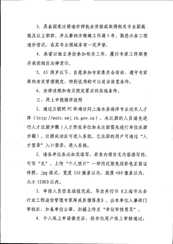 关于推荐上海市水务行业工程造价管理专家候选人的通知
