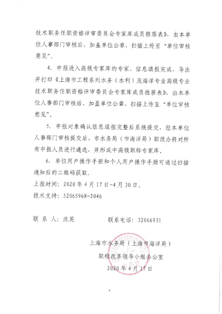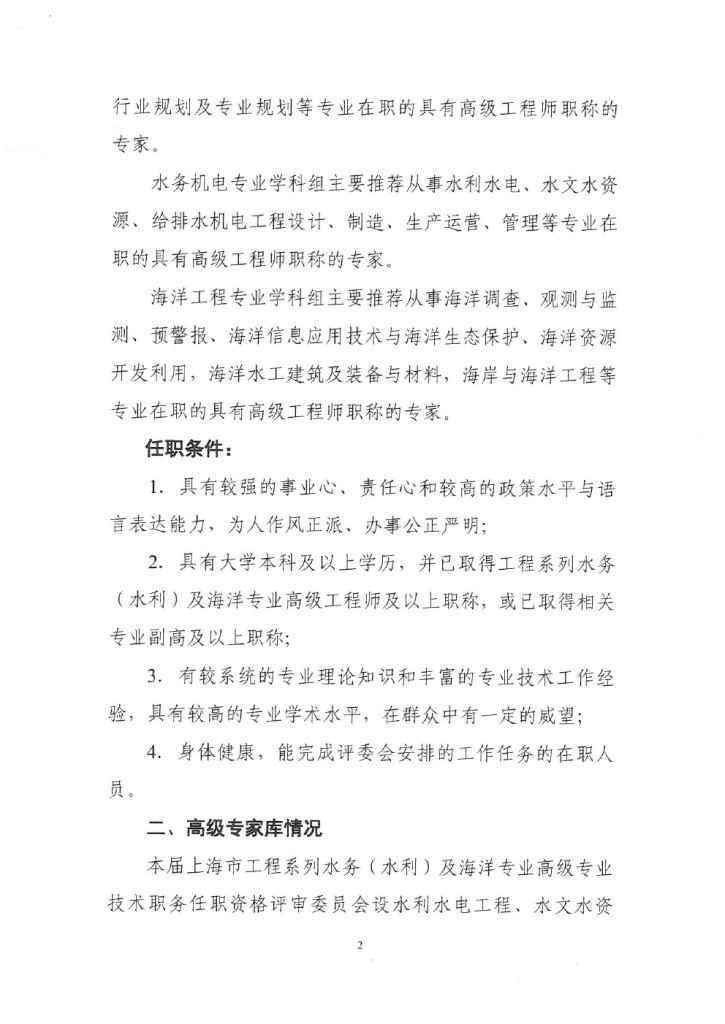 转发市水务局关于推荐上海市工程系列水务(水利)及海洋专业中、高级专业技术职务任职资格评审委员会专家库成员的通知