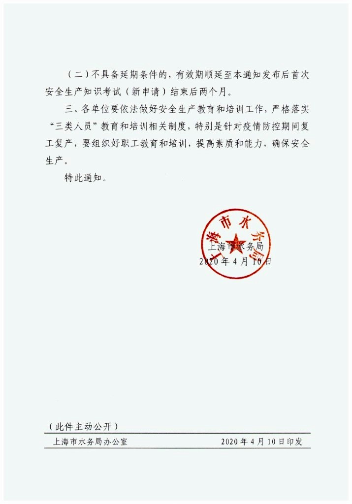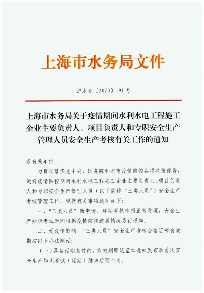 转发市水务局关于疫情期间水利三类人员安全生产考核有关工作的通知