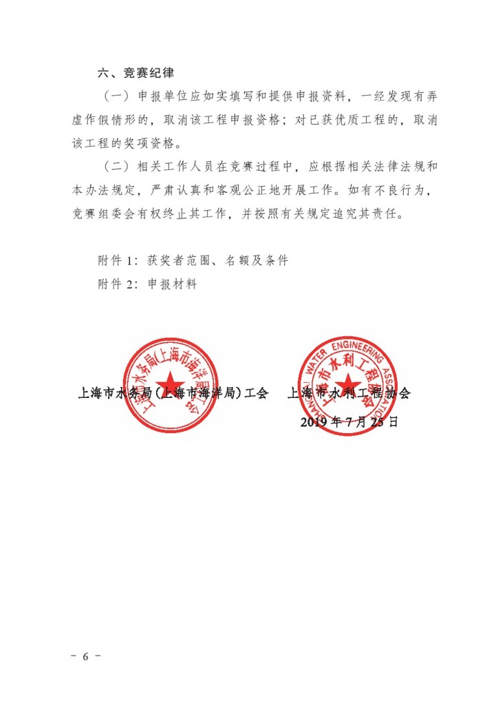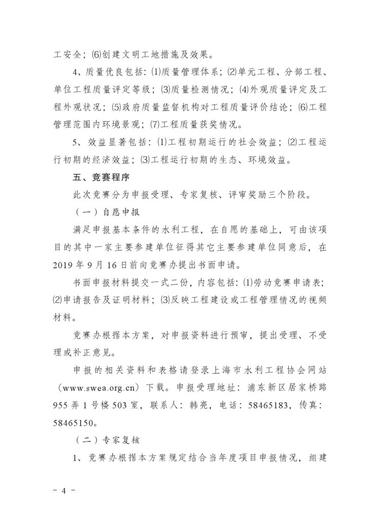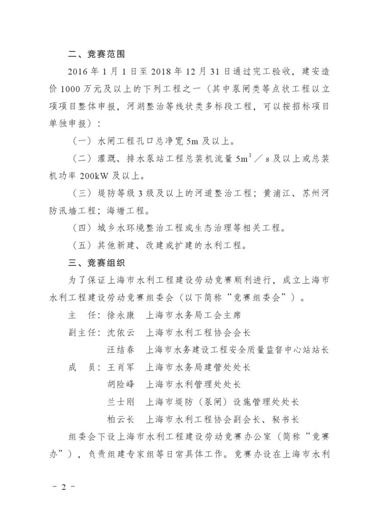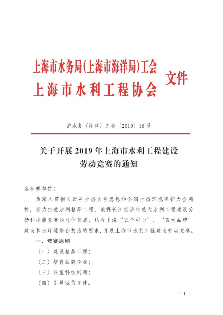 关于开展2019年上海市水利工程建设劳动竞赛的通知