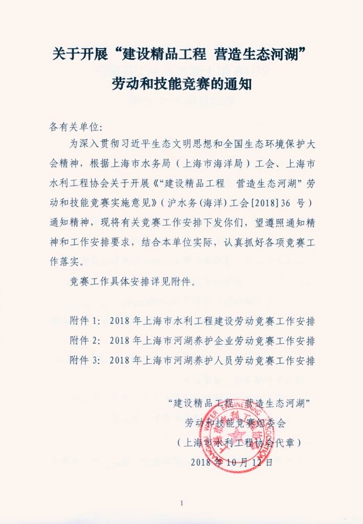 关于开展“建设精品工程 营造生态河湖”劳动和技能竞赛的通知