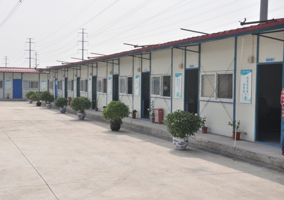 在金桥市政公司负责建设的新建昌飞路(南萃路—沔北路)道路工程2标项目部,大家一同参观了民工宿舍、集体食堂、员工活动室、洗漱间等生活设施。该项目部民工宿舍窗明几净,被褥叠放参照军队标准,宿舍区各项规章制度明确严格。吴雪康书记介绍说,为了给农民工提供一个舒适的居住环境,公司统一为农民工配置了床、床单、被子、毛巾、储藏柜等生活设施,并在宿舍区开辟了公用厨房,为他们添置了蒸饭箱等物品,解除了原来农民工宿舍电线乱拉、床边明火炒菜等极具威胁性的安全隐患。