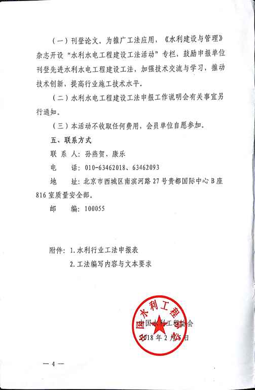 转发中国水利工程协会《关于开展2018年度水利行业工法申报工作的通知》