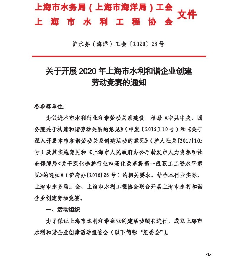 关于开展2020年水利和谐企业创建劳动竞赛的通知