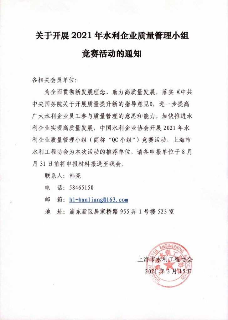 附件:关于开展2021年水利企业质量管理小组竞赛活动的通知(中企协)