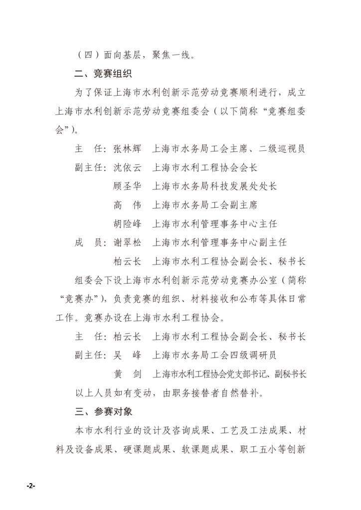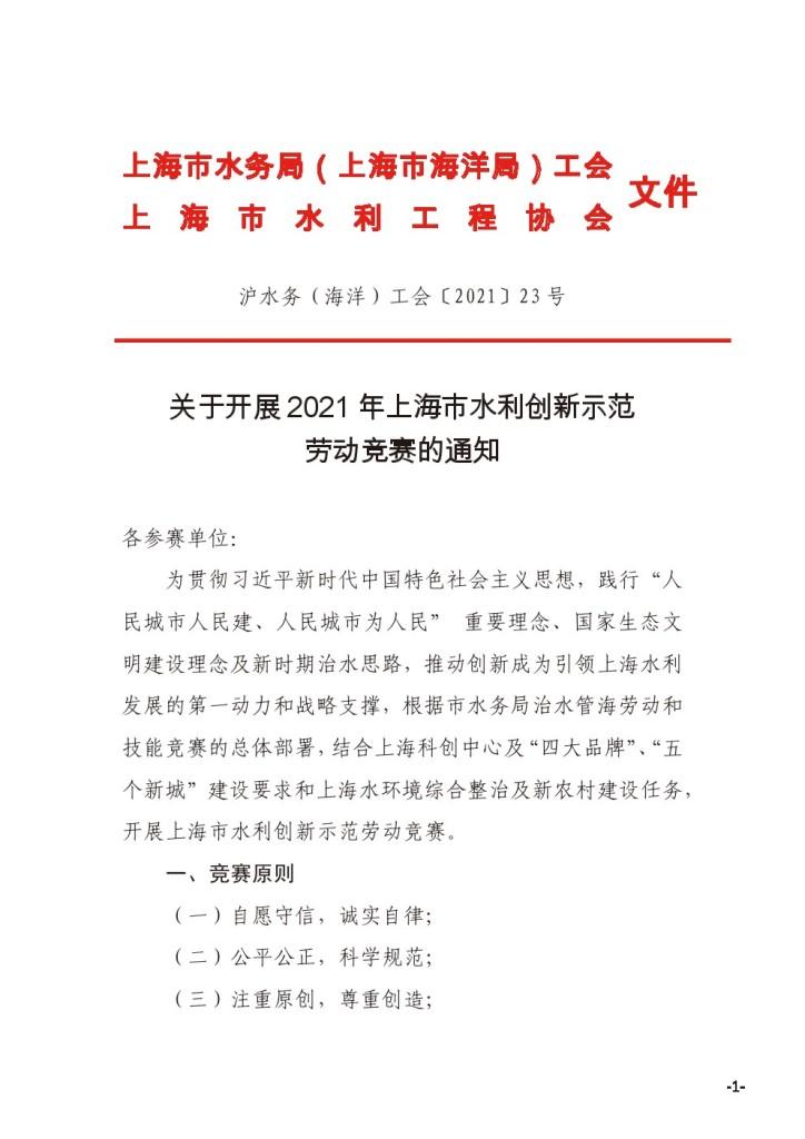 关于开展2021年上海市水利创新示范劳动竞赛的通知