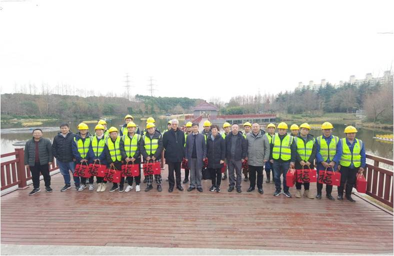 张主席首先对项目一线员工饱满的工作热情和不畏严寒、坚守岗位的辛勤工作表示肯定和感谢,在新年即将到来之际预祝大家新年快乐。随后,张主席、高副主席、沈会长等领导为一线员工发放了春节慰问品。最后,张主席强调,项目部要继续做好施工安全质量保障工作,坚守安全红线、强化安全底线、筑牢安全防线;目前疫情仍然较为紧张,要做好自我防护,配合国家及地方的统一部署,做好疫情防控。同时,要克服严寒天气影响,合理安排工作,注重劳逸结合,确保各项工作有条不紊地进行,为上海河道的水清、岸绿、景美再创佳绩。公司总经理陈晓虎、常务副经理项鹏海等同志陪同慰问。