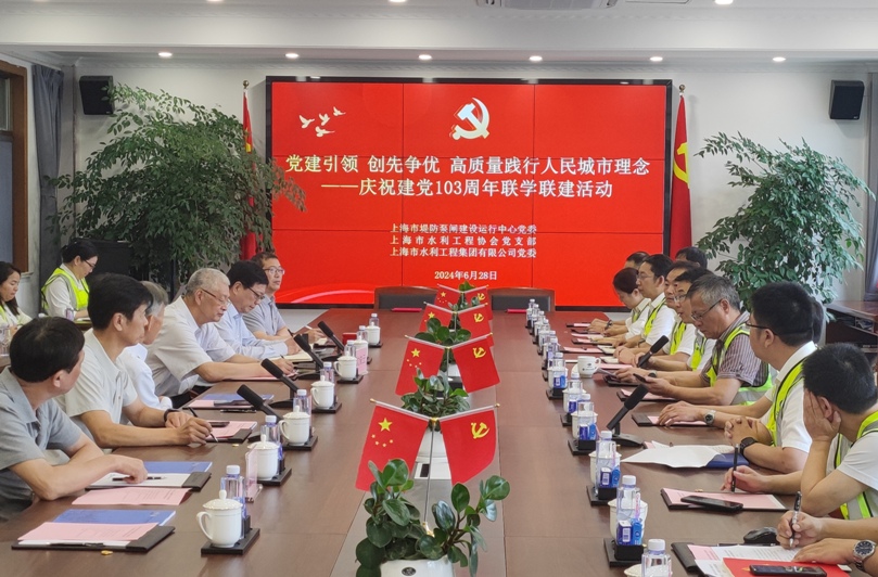 6月28日,市水利工程协会党支部、市堤防泵闸建设运行中心党委、市水利工程集团有限公司党委,在黄浦江中上游堤防防洪能力提升工程(一期)5标段项目部联合举办“党建引领 创先争优 高质量践行人民城市理念”—庆祝建党103周年联学联建活动。市水利工程协会会长沈依云、常务副会长张林辉、党支部书记黄剑,市堤防泵闸建设运行中心党委书记方晨阳等出席。