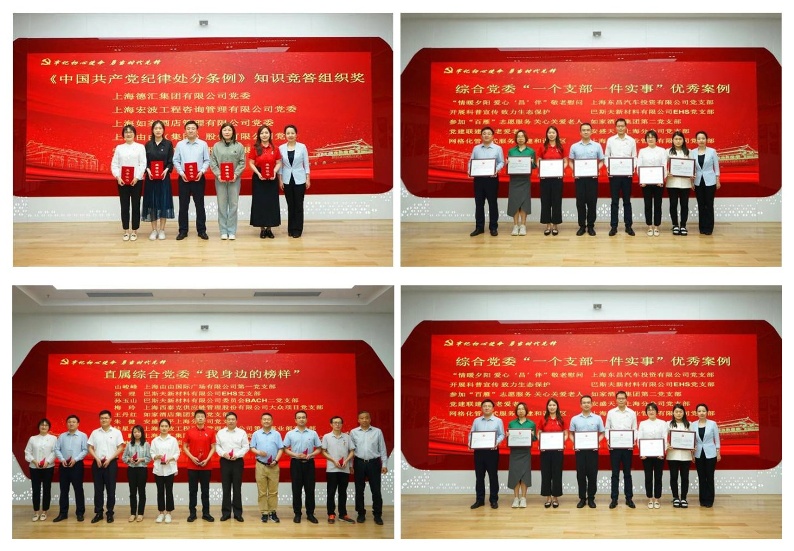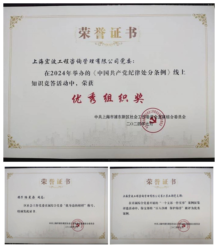 在近日召开的中共上海市浦东新区社会工作委员会直属综合委员会庆祝建党103周年大会上,宏波公司党委荣获知识竞答“优秀组织奖”,仁泓党支部陈燕、孙琪荣获知识竞答“优胜奖”,第六事业部党支部《百人净滩 保护海洋》荣获优秀案例,第一党支部陆星丞荣获“我身边的榜样”称号。
