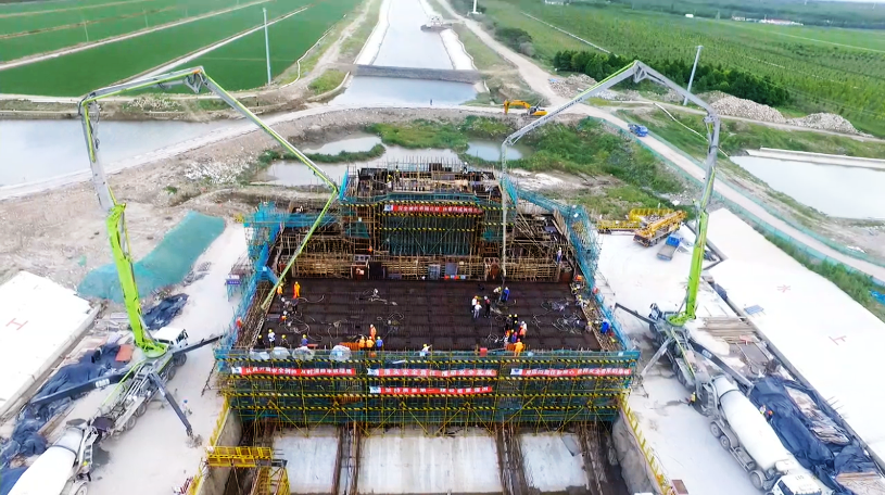 南门港水闸改造工程刷新上海地区水利工程墩墙一次性混凝土浇筑高度新纪录
