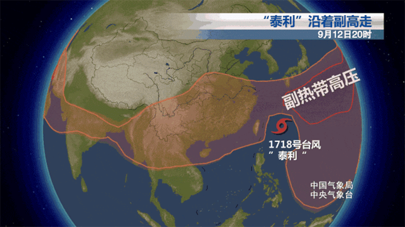 ▲ 2017年台风“泰利”与副热带高压相互影响