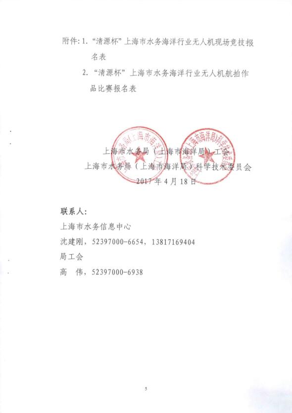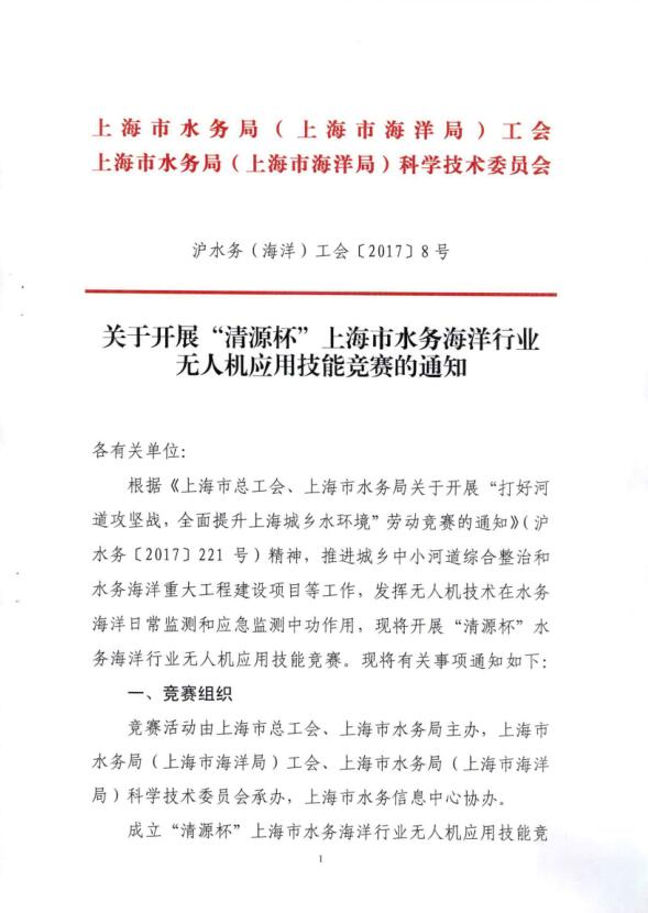 转发《关于开展“清源杯”上海市水务海洋行业无人机应用技能竞赛的通知》