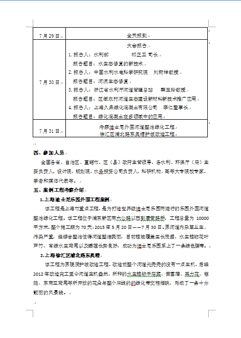 报告内容包括:水生态修复新技术、河流生态修复技术、区域农村河道生态建设新材料新技术的推广应用、绿化混凝土在多领域中的应用等,并实地考察迪士尼外围河道整治绿化工程和徐汇区浦北路东奥塘护坡改造工程。(详见中国水利技术信息中心“关于召开生态护坡治理新产品与新技术应用研讨会的通知”中水技心函[2016]17号)。请广大会员单位踊跃参加,每单位可以参加2人。并于7月22日(五)中午12:00前反馈回执表,以便会议安排。会员单位不收费用。
