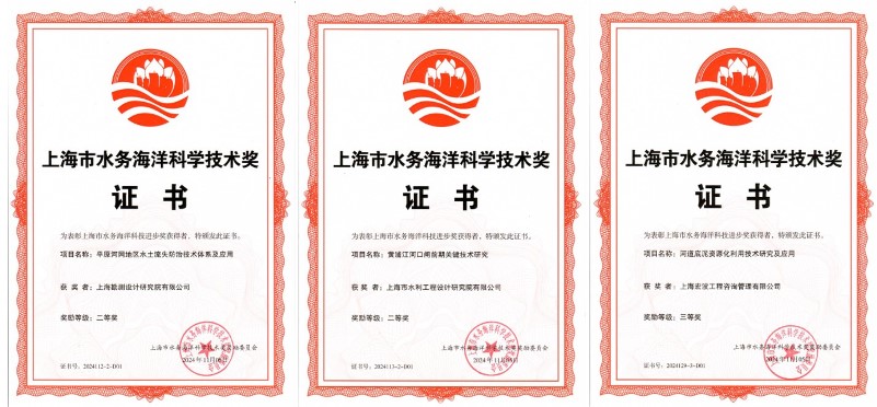 近期,由leyu.乐鱼(集团)电子科技股份有限公司网站推荐的《平原河网地区水土流失防治技术体系及应用》(上海勘测设计研究院有限公司申报)和《黄浦江河口闸前期关键技术研究》(上海市水利工程设计研究院有限公司申报)项目,荣获2024年上海市水务海洋科技进步奖二等奖;《河道底泥资源化利用技术研究及应用》(上海宏波工程咨询管理有限公司申报)项目,荣获2024年上海市水务海洋科技进步奖三等奖。