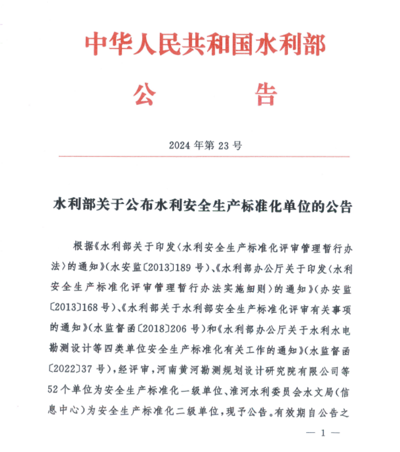 园林集团获水利部授予水利安全生产标准化一级单位