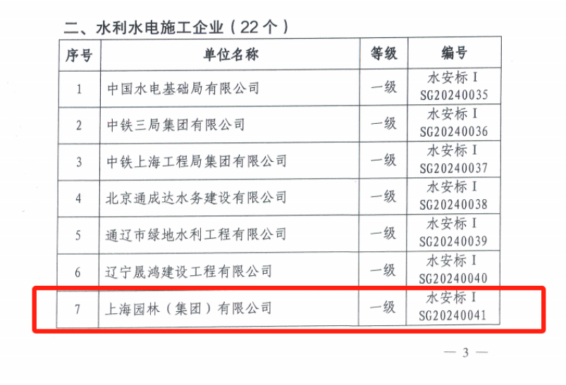近日,国家水利部发布《关于公布水利安全生产标准化单位的公告》,上海建工园林集团成功获水利部授予水利安全生产标准化一级单位。