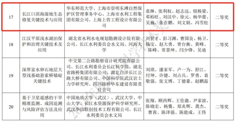 湿地复苏 科技助力 上水集团荣获长江科技进步奖二等奖