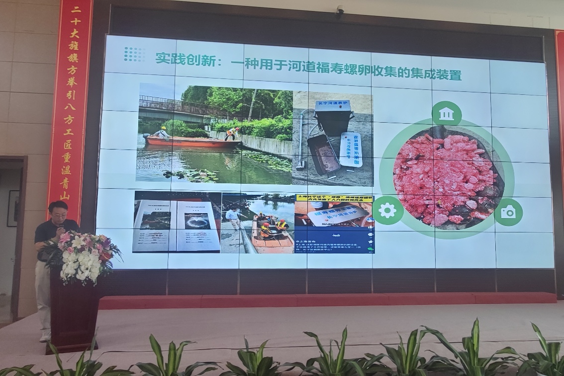 河道实战:上海金鹿建设(集团)有限公司陈智达聚焦《福寿螺危害与河道养护中的控制策略》,提出通过技术创新(集成装置)与综合治理(监测+公众参与),破解城市河道福寿螺防控难题。上海普陀市政工程有限公司俞雄杰分享《福寿螺全域防控体系——基于生物学习性的生态治理》,建议基于生物学习性构建“拦截-调节-控制”技术链,推动从局部治理向全域生态防控升级。