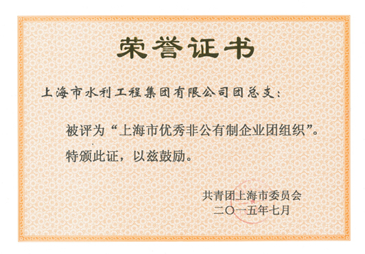 近日,在共青团上海市委员会举办的“2014年度上海市非公有制企业团建工作先进单位及个人”评选活动中,上海市水利工程集团有限公司团总支荣获“上海市优秀非公企业团组织”称号。