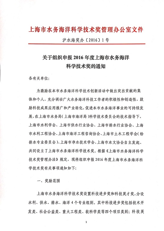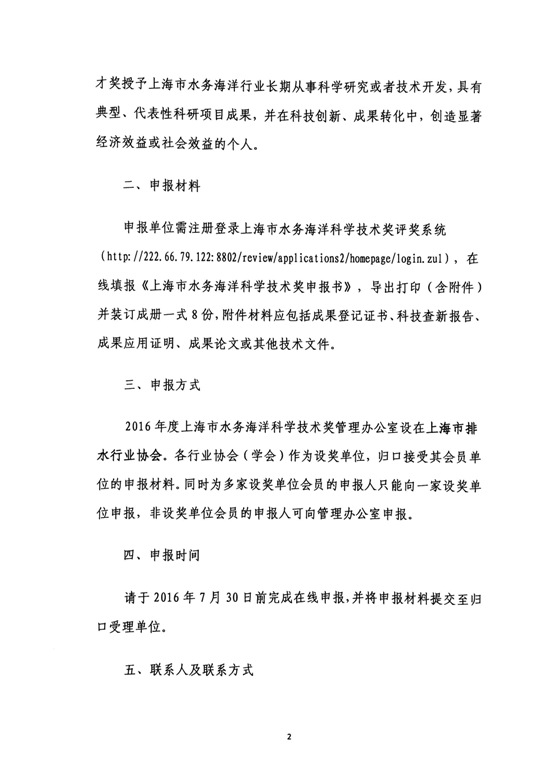 上海市水务海洋科学技术奖评奖入口: