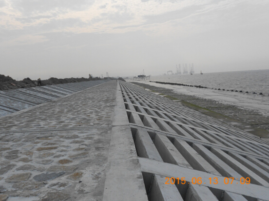 2015年6月12日,随着最后一仓二级坡灌砌石护坡浇筑完成,上水集团承接的上海临港产业区奉贤分区圈围大堤工程2标项目“6.30节点”宣告顺利完成,确保大堤安全度汛。