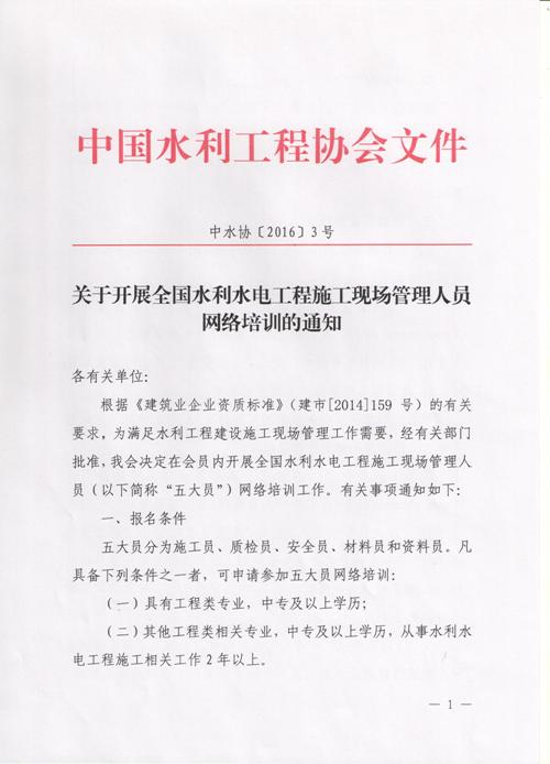 转发中国水利工程协会关于开展全国水利水电工程施工现场管理人员网络培训的通知