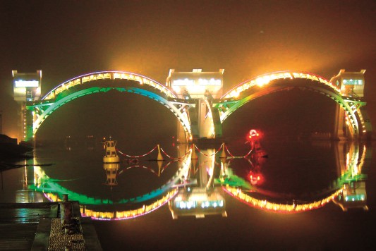 亚洲跨度最大的弧形闸门——镇江引航道闸桥工程桥梁 亚洲首例双孔护镜门---南京三汊河口闸
