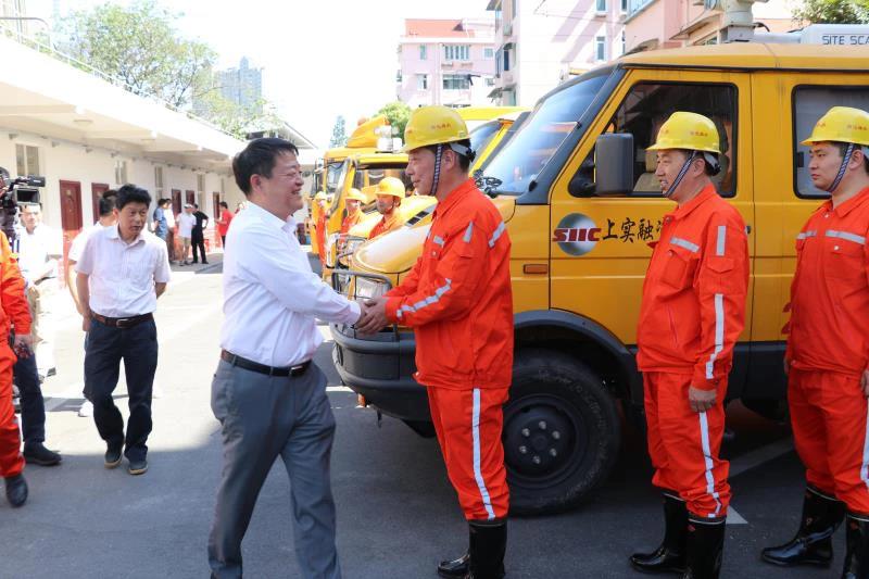 市防汛指挥部办公室接指令后,及时通知市排水处通过智能移动泵车调度系统调动7辆泵车及40余名排水突击队抵达上海永达市政建设养护工程有限公司防汛防台抢险设备基地(凯旋路1325号)集结待命。40分钟后,赵奇副总指挥对先后到达的移动泵车进行了检查,详细了解各种车辆的性能,慰问了抵达的突击队队员,观看了应急排水演练;在永达公司会议室,赵奇副总指挥听取了智能移动泵车指挥系统的介绍,并详细询问了长宁区防汛准备情况,现场检查了新华路下立交等重点区域。