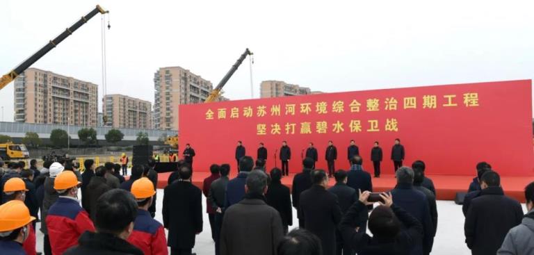 “全面启动苏州河环境综合整治四期工程、坚决打赢碧水保卫战”活动今天举行。“苏四期”这一全市重大环保项目、民生项目、投资项目的全面启动,标志着上海“母亲河”苏州河进入全流域综合治理新阶段。市委书记李强宣布苏州河环境综合整治四期工程全面开工,市委副书记、市长应勇讲话。